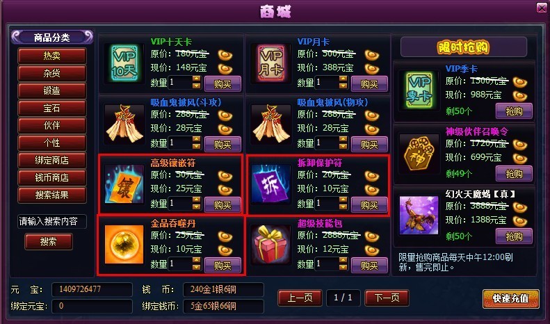 商城限时热卖将以超值优惠价出售【角色突飞大礼包】、【异火突飞大礼包】、【宝石突飞大礼包】,限时出售,不要错过机会喔!