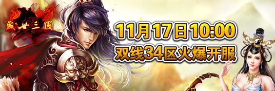 陪游《盛世三国》34区将于11月17日上午10:00震撼开启,与此同时,我们还为各位玩家准备了丰富的活动和好礼,助英雄们驰骋沙场!